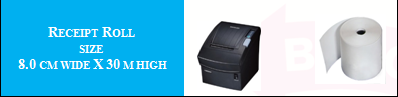 RECEIPT ROLL SIZE 8.0 CM WIDE X 30 M HIGH