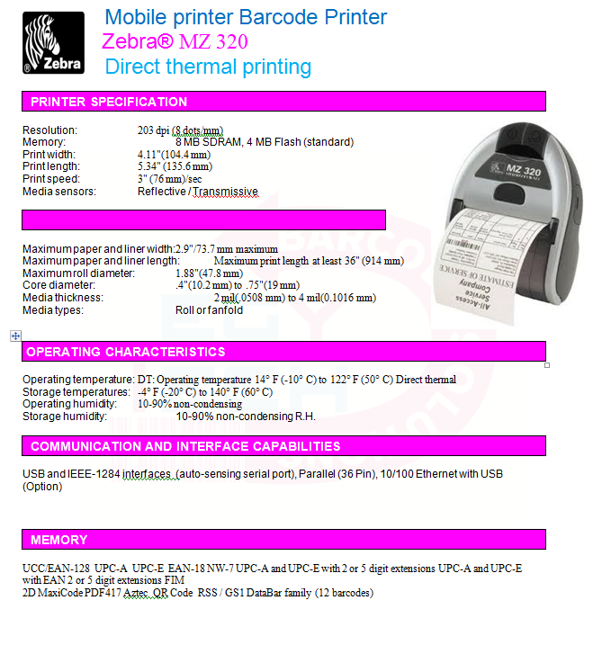 فبراير 15, 2015 admin Direct thermal printing, Mobile printer Barcode Printer, Zebra